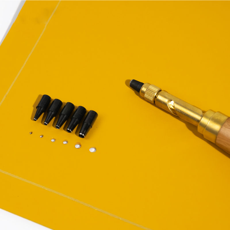 Achieve flawless hole-punching with our screw punches, offering five replaceable sizes: 1.5mm, 2mm, 2.5mm, 3mm, and 3.5mm. Ideal for leather, paper and plastic, our punches feature sharp, durable tips for clean, accurate holes. Choose between our Economy and Standard models, both designed for comfort and ease of use. Ensure professional-quality results in every project with Kearing’s reliable and versatile screw punches.