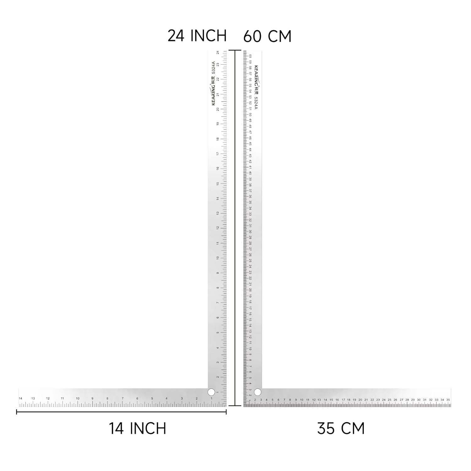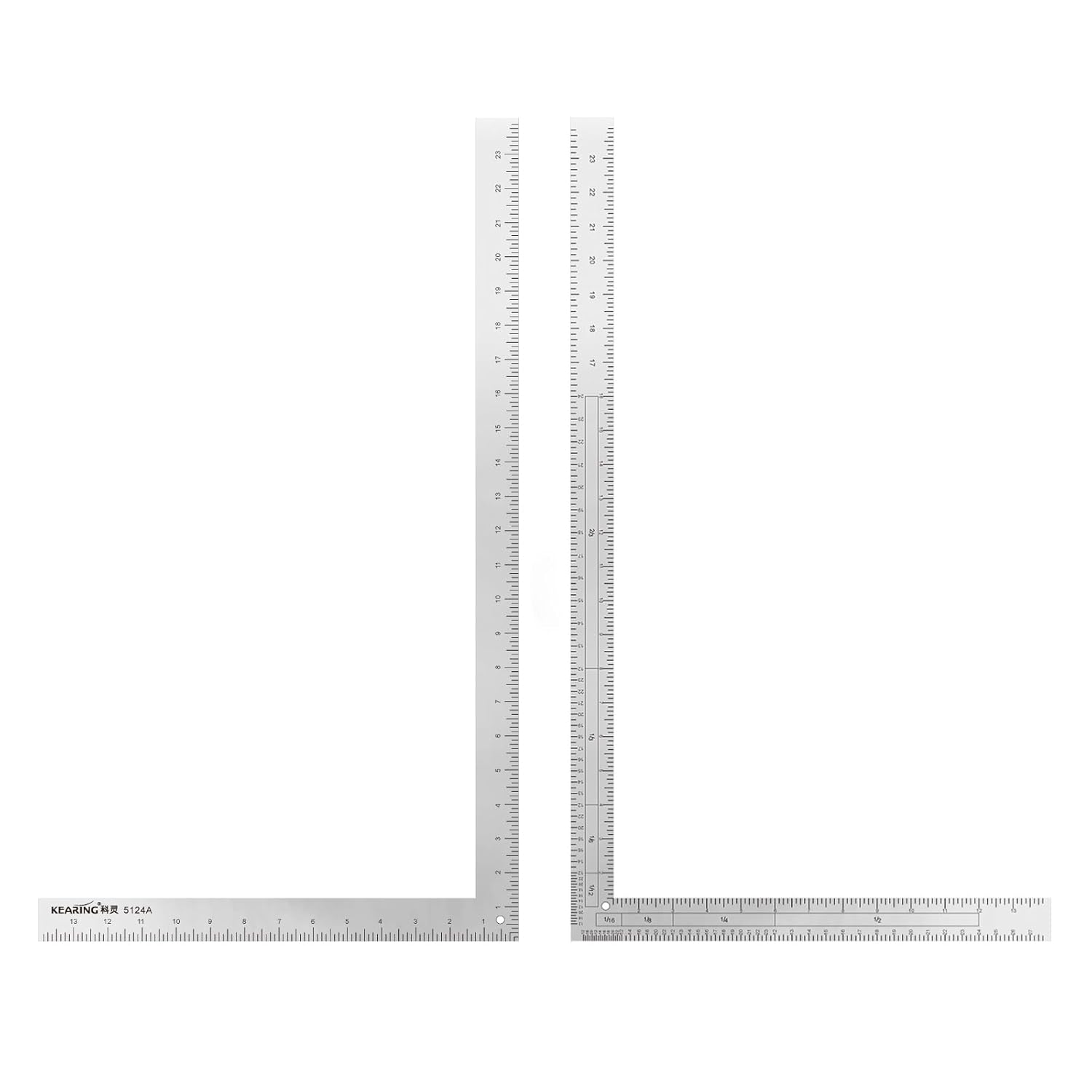 What You Get: 1 Heavy Duty Aluminum L-Square with Metric Markings on 1 Side and Imperial Markings on the other side.