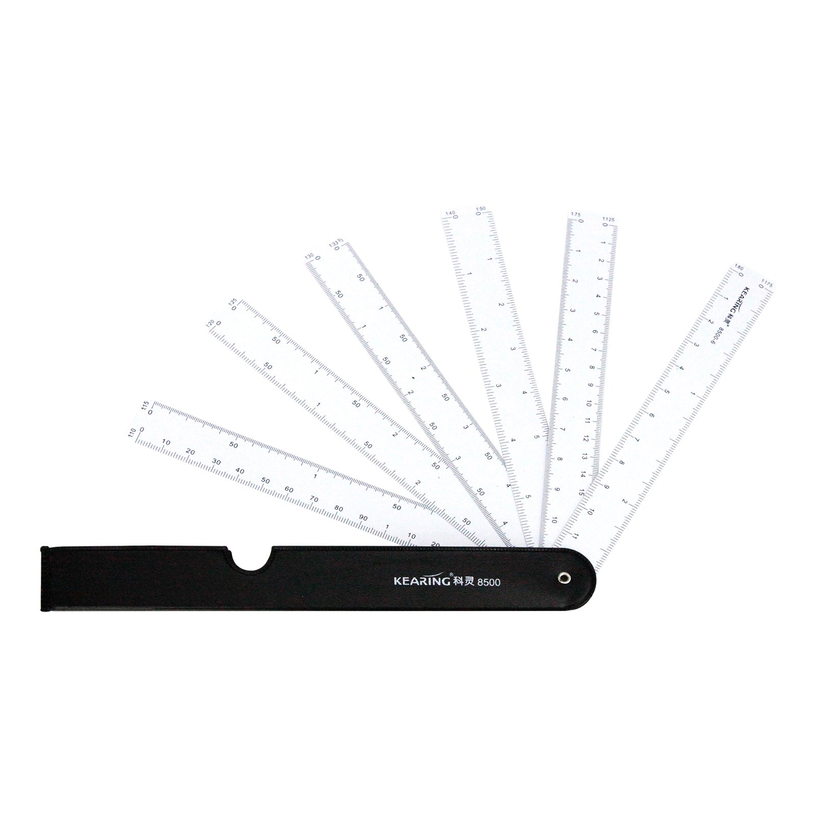 The Kearing Fan-Shaped Plastic Scale Ruler is a versatile measuring tool designed for architects, engineers, students, and professionals who demand accuracy in drafting and technical drawing. Made from durable transparent plastic, this ruler offers six different scales in one compact fan-shaped design, making it easy to measure, compare, and draft with precision.