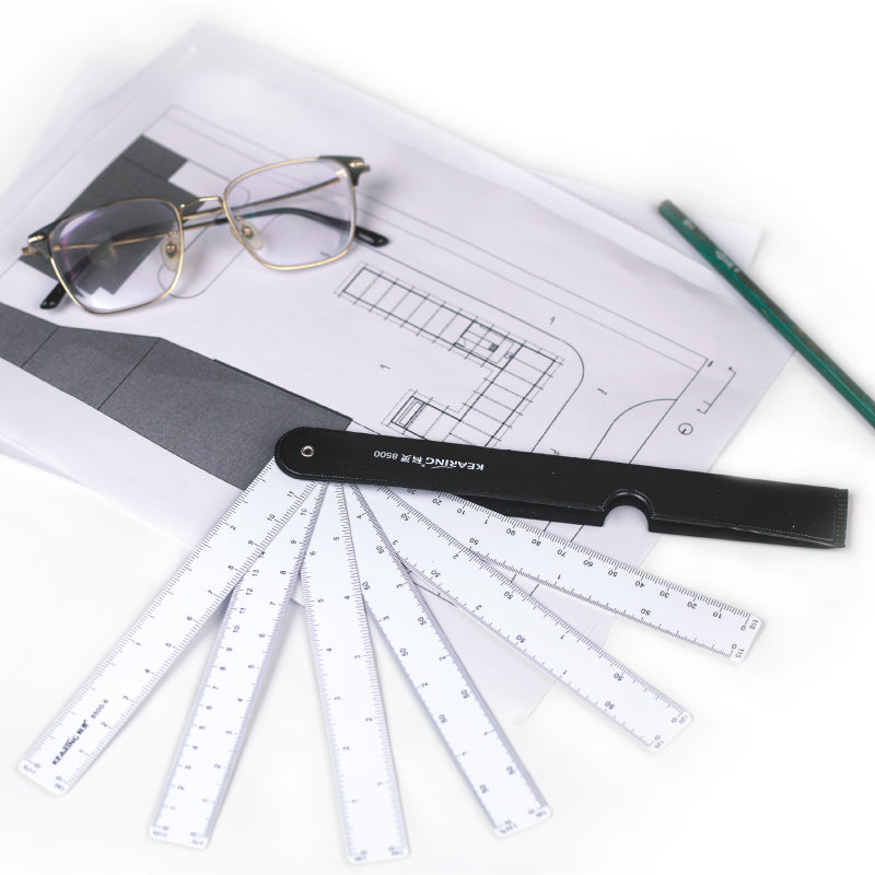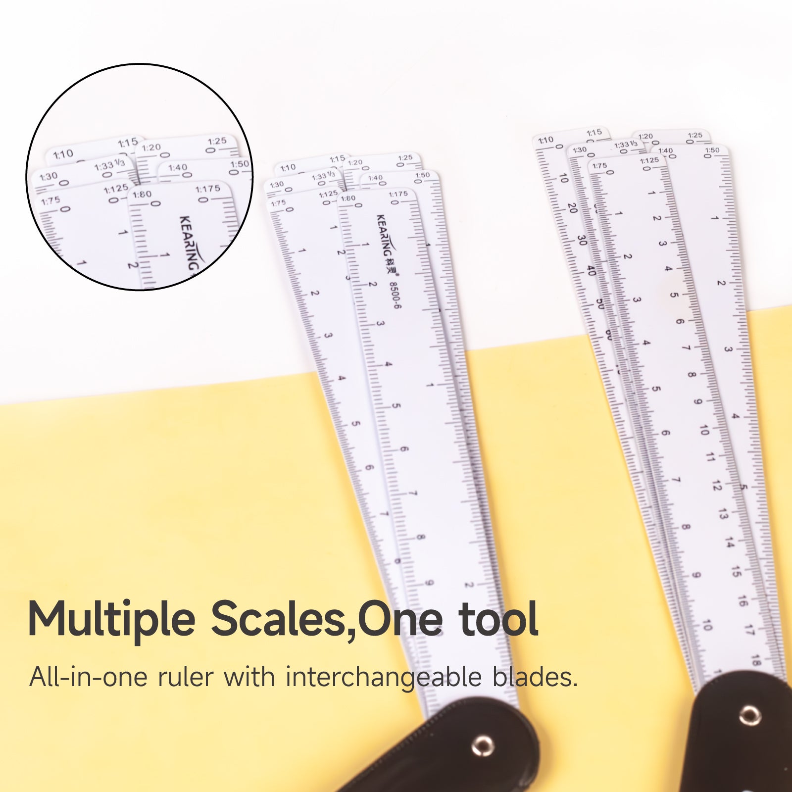 6 Pieces in One Tool with 12 Scales – Fan-shaped design provides multiple measuring options in a compact format - 1:10, 1:15, 1:20, 1:25, 1:30, 1:33, 1:40, 1:50, 1:75, 1:80, 1:125, and 1:175.