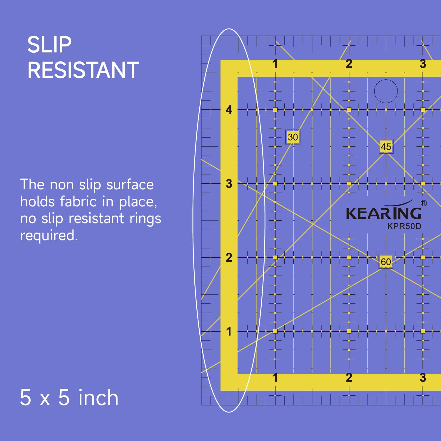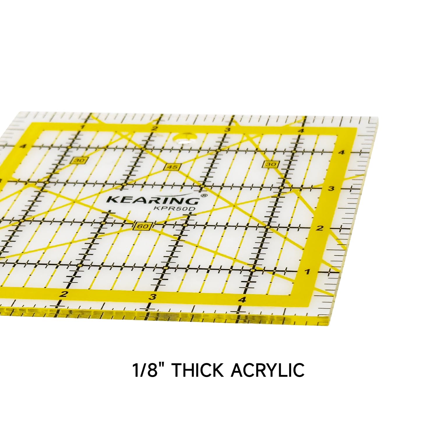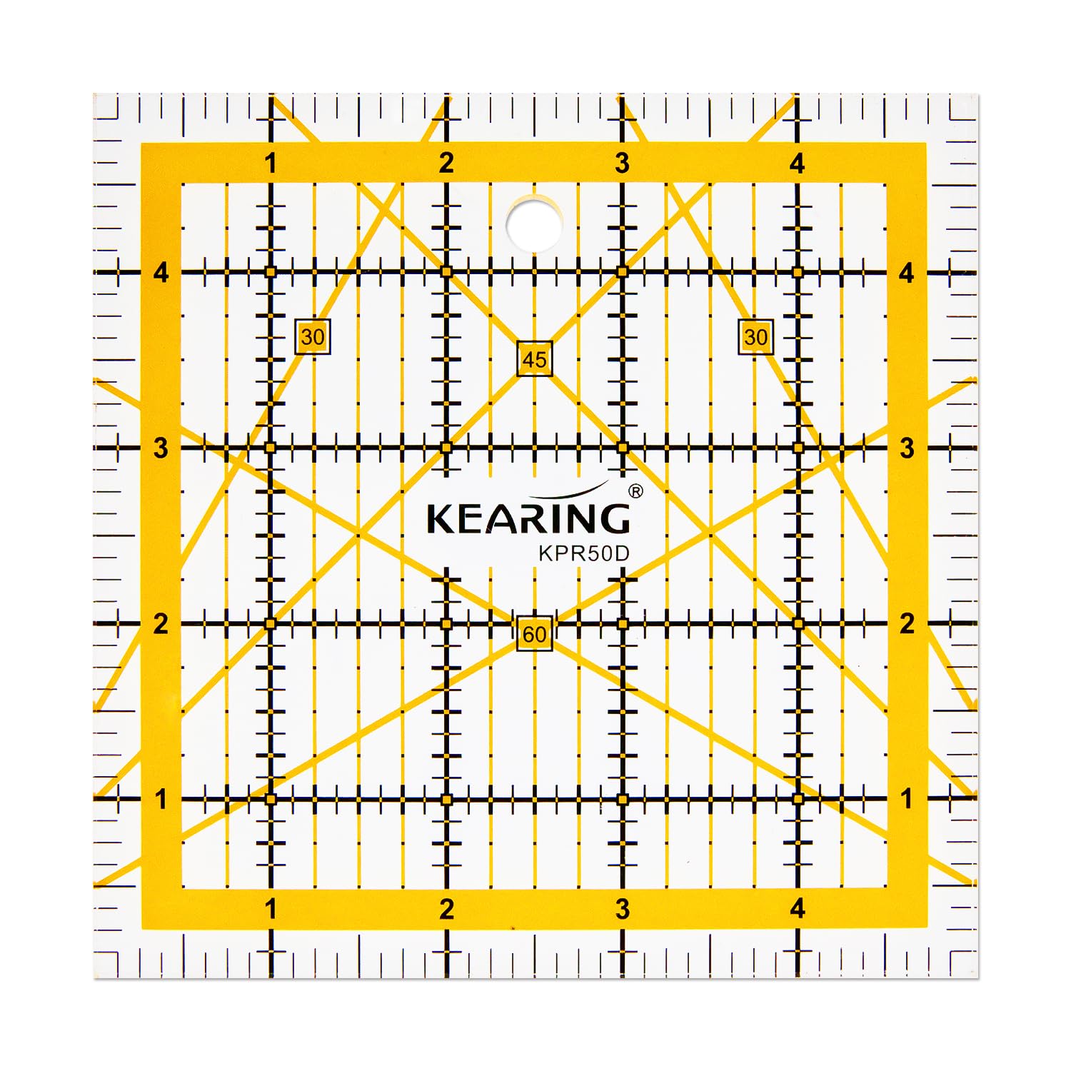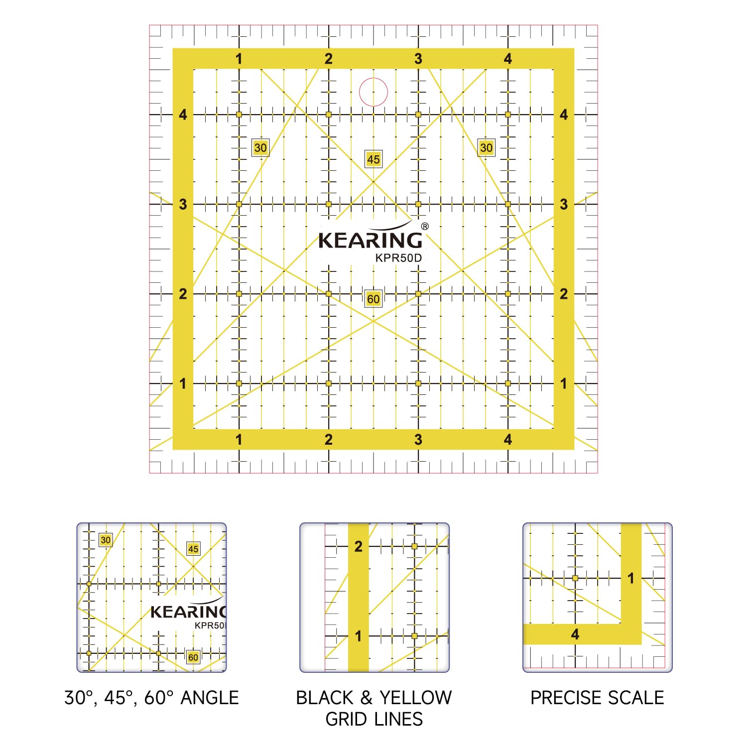 The Kearing Square Quilting Ruler is designed to give quilters, sewists, and crafters precise, effortless cuts every time. Made from premium 3mm acrylic, this durable ruler features bold black and yellow grid lines that stay visible on both light and dark fabrics. Its anti-slip surface keeps fabric steady, eliminating the need for slip-resistant rings.